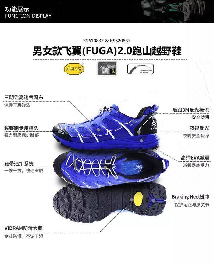 KAILAS fuga 2.0(飞翼)是KAILAS在2017年推出的第二代越野跑鞋,同时也是KAILAS小太阳队和非凡之队标配的越野跑鞋。下面跟随我的脚步,先睹为快,来体验这一款适合竞速的越野跑鞋。