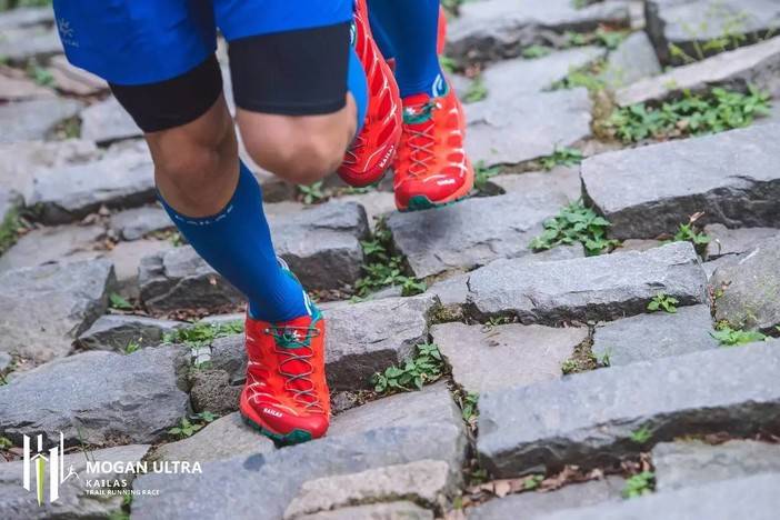 连续的石阶步道往往令人头疼,却也是比赛中不可避免的路段。石阶路段由于频繁规律性的上升和下降,对参赛者的膝盖负担很大。这次穿着KAILAS fuga 2.0,明显能够感觉到鞋底变形,向四周扩张抓紧地面,同时将重力分散,减少了对膝盖和下肢的冲击力。