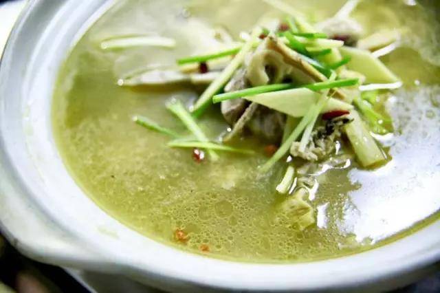 大铁锅温火细熬数小时,羊肉酥软,不油不腻,好味健康,深受喜爱。