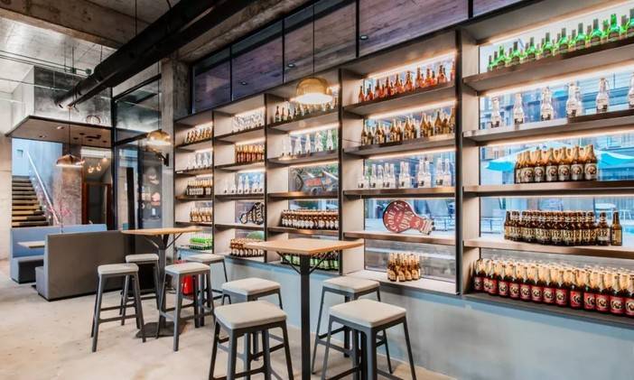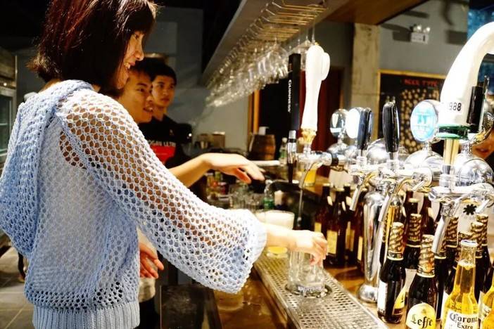 拥有数十种进口包括精酿啤酒的啤酒餐吧