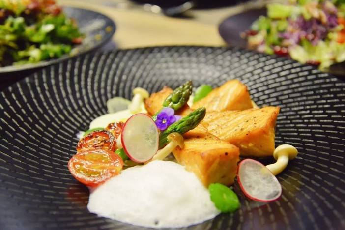 香煎三文鱼配奶油柠檬汁,伴着柠檬清香,尝一口恰到好处的香煎三文鱼,口齿留香。