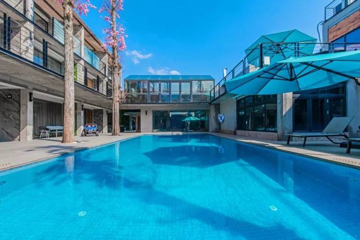 蓝得见底的常温泳池,每天都会定时过滤清理,哪怕不开放,也会保持水质的清澈。在泳池旁看世界杯,要不要感受一下?