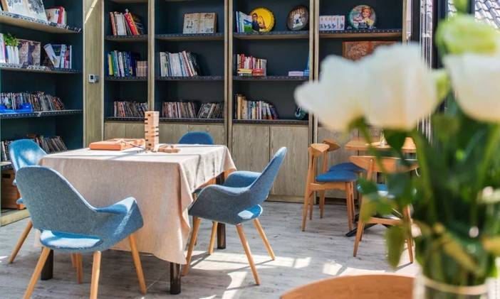 全玻璃小书房,暖暖的阳光房。小朋友们可以在这儿搭积木玩游戏,家长们在这边安静地看书,享受着相互陪伴的亲子时光。