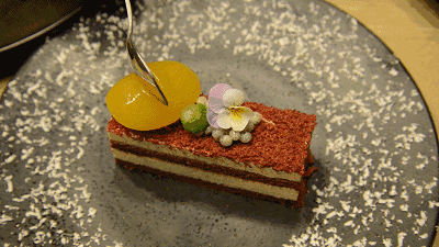 提拉米苏,这是一道创意菜,采用了新潮的分子美食学,将食物的味觉以分子为单位进行处理和呈现,打破食材原貌,重新搭配和塑形,你所吃的并非你所见的。