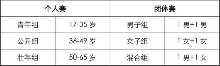 2. 8KM的个人赛不设年龄组别。30KM、70KM的个人赛有且仅能有1人参赛,分为青年组、公开组、壮年组。