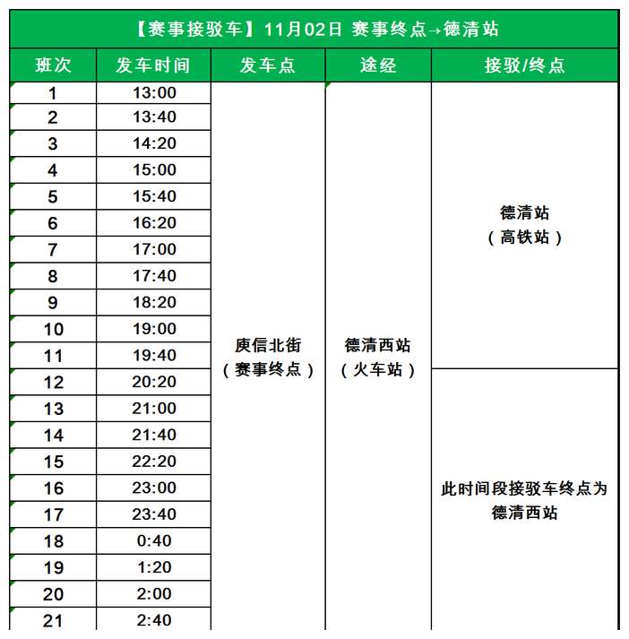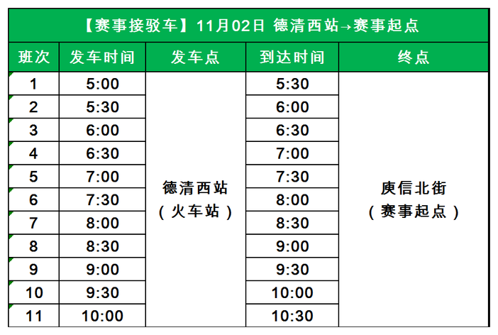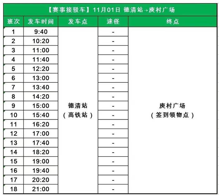 组委会将会在“德清站”安排交通接驳服务,具体安排如下: