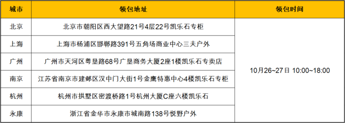 选择在以上地点提前领包的选手,请持本人有效身份证原件(二代身份证、护照、港澳通行证、台胞证等)至领取现场签字领取,不可代领。(提前签到的选手无需携带强制装备,强制装备将会在11月01日~02日检查。)