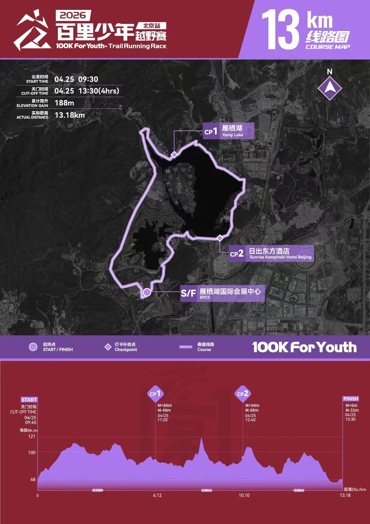 其中:13公里百里少年亲子组设立年龄组排名颁奖;